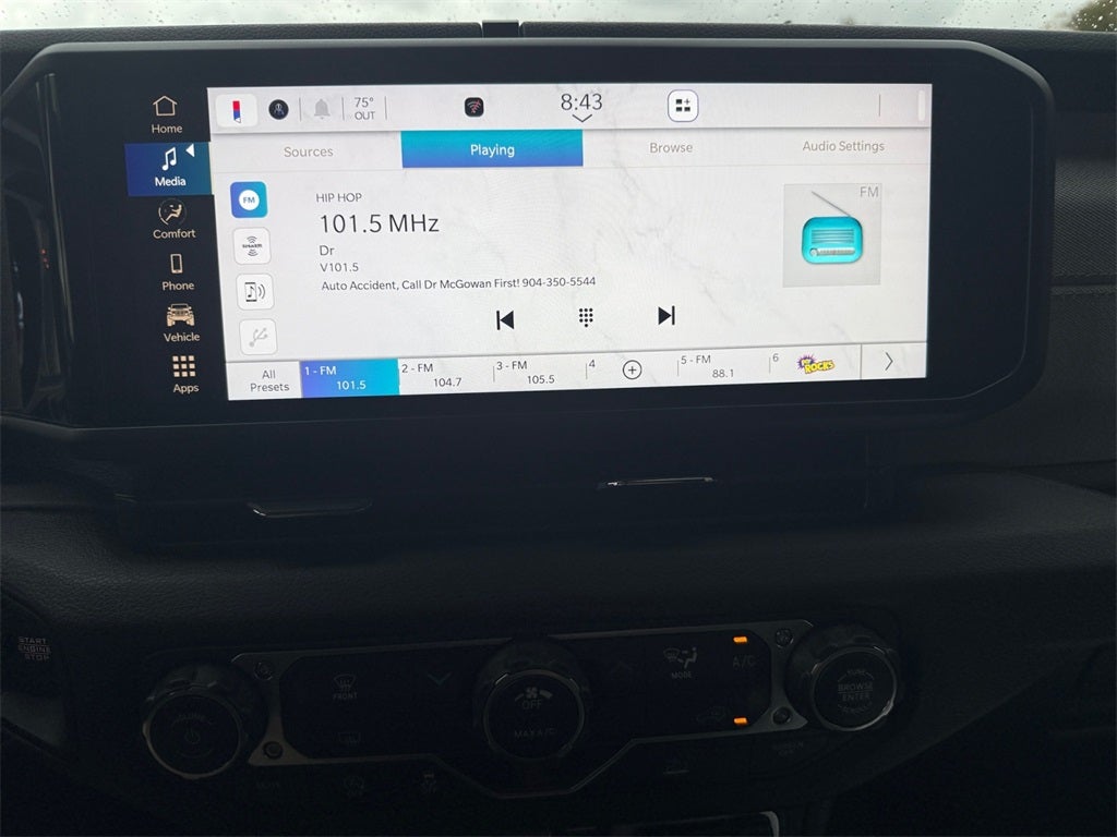 - Radio w/Seek-Scan, Clock, Speed Compensated Volume Control, Aux Audio Input Jack, Steering Wheel Controls, Voice Activation, Radio Data System and Uconnect External Memory Control