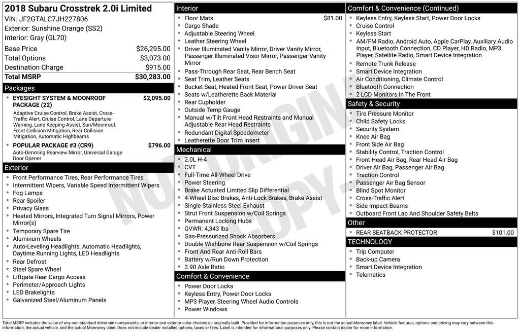 - Vehicle Name: Subaru Crosstrek