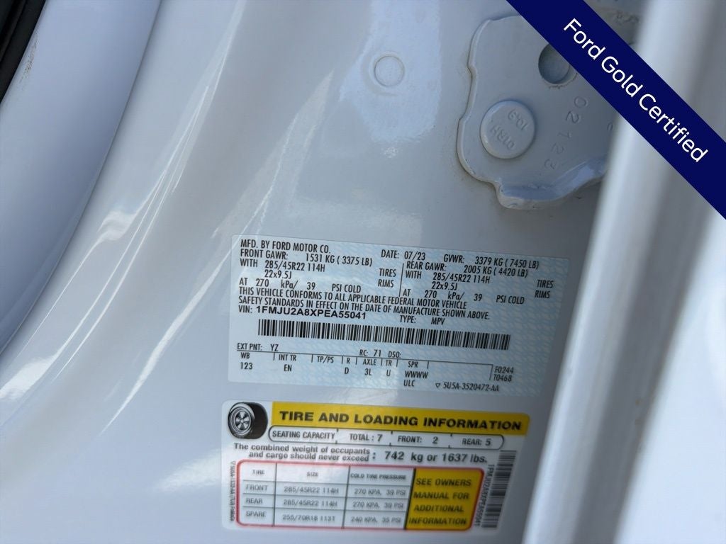 CARFAX One-Owner. Murray Ford Superstore of Starke is pumped up to offer this fantastic-looking 2023 Ford Expedition in Oxford White This vehicle is readily available and comes with the following Equipment Group 302A High Package (Ebony Black Mesh Grille, Heavy-Duty Independent Suspension, Magnetic-Painted Power Deployable Running Boards, Panoramic Vista Roof, Power-Folding Sideview Mirrors w/Autofold, and Wheels: 22 12-Spoke Polished Aluminum), Heavy-Duty Trailer Tow Package (26mm Engine Radiator, 3.73 Axle Ratio, 360-Degree Camera w/Trailer Reverse Guidance, Integrated Trailer Brake Controller, and Pro Trailer Backup Assist), Ford Gold Certified Certified, 4WD, 12 Speakers, 360-Degree Camera w/Split View, 3rd row seats: split-bench, 4-Wheel Disc Brakes, ABS brakes, Adjustable pedals, Air Conditioning, Alloy wheels, AM/FM radio: SiriusXM with 360L, Auto High-beam Headlights, Auto-dimming door mirrors, Auto-dimming Rear-View mirror, Automatic temperature control, Brake assist, Bumpers: body-color, Compass, Connected Built-In Navigation, Delay-off headlights, Driver door bin, Driver vanity mirror, Dual front impact airbags, Dual front side impact airbags, Electronic Stability Control, Emergency communication system: SYNC 4 911 Assist, Exterior Parking Camera Rear, Four wheel independent suspension, Front anti-roll bar, Front Bucket Seats, Front Center Armrest, Front dual zone A/C, Front fog lights, Front License Plate Bracket, Front reading lights, Fully automatic headlights, Garage door transmitter, Heated & Ventilated Leather Front Captain's Chairs, Heated door mirrors, Heated front seats, Heated rear seats, Heated steering wheel, Illuminated entry, Leather steering wheel, Low tire pressure warning, Memory seat, Navigation system: Connected Navigation, Occupant sensing airbag, Outside temperature display, Overhead airbag, Overhead console, Panic alarm, Passenger door bin, Passenger vanity mirror, Pedal memory, Power door mirrors, Power driver seat, Power Liftgate, Power moonroof, Power passenger seat, Power steering, Power windows, Radio data system, Radio: B&O Sound System by Bang & Olufsen, Rain sensing wipers, Rear air conditioning, Rear anti-roll bar, Rear reading lights, Rear window defroster, Rear window wiper, Reclining 3rd row seat, Remote keyless entry, Reverse Brake Assist, Second Row Power Windows Removal, Security system, SiriusXM w/360L, Speed control, Speed-sensing steering, Speed-Sensitive Wipers, Split folding rear seat, Spoiler, Steering wheel memory, Steering wheel mounted audio controls, SYNC 4 w/Enhanced Voice Recognition, Tachometer, Telescoping steering wheel, Tilt steering wheel, Traction control, Trip computer, Turn signal indicator mirrors, Variably intermittent wipers, Ventilated front seats, Voltmeter, and Wheels: 20 Bright Machined Aluminum;