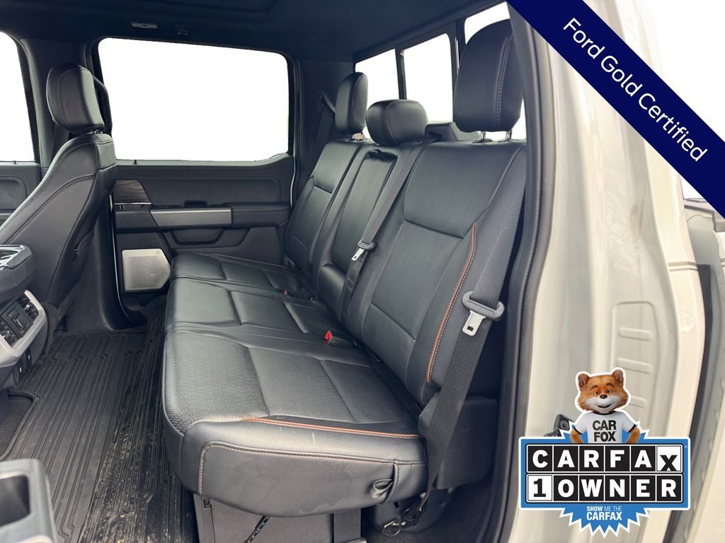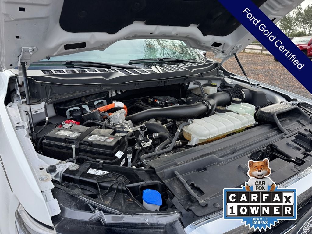 CARFAX One-Owner. Murray Ford Superstore of Starke is pumped up to offer this stout 2024 Ford F-150 in White Metallic This vehicle is readily available and comes with the following Bed Utility Package (4 Pickup Box Tie-Down Plates, LED Box Lighting, Power Tailgate, and Pro Access Tailgate), Equipment Group 502A High (2nd Row Heated Seats, 6 Extended Chrome Running Boards, Heads-Up Display, and Radio: B&O Unleashed Sound System by Bang & Olufsen), Mobile Office Package (Console Worksurface, Partitioned Lockable Rear Storage, and Wireless Charging), Tow/Haul Package (Integrated Trailer Brake Controller), Ford Gold Certified Certified, 3.5L PowerBoost Full-Hybrid V6, 4WD, 4-Wheel Disc Brakes, 6 Extended Running Boards, 8 Speakers, ABS brakes, Adjustable pedals, Air Conditioning, Alloy wheels, AM/FM radio: SiriusXM with 360L, Auto High-beam Headlights, Auto-dimming door mirrors, Auto-dimming Rear-View mirror, Automatic temperature control, Brake assist, Bumpers: chrome, Chrome wheels, Compass, Delay-off headlights, Driver door bin, Driver vanity mirror, Dual front impact airbags, Dual front side impact airbags, Electronic Locking w/3.73 Axle Ratio, Electronic Stability Control, Emergency communication system: SYNC 4 911 Assist, Front anti-roll bar, Front Bucket Seats, Front Center Armrest, Front dual zone A/C, Front fog lights, Front reading lights, Front wheel independent suspension, Fully automatic headlights, Garage door transmitter, Heated door mirrors, Heated front seats, Heated steering wheel, Illuminated entry, Leather-Trimmed Bucket Seats, Low tire pressure warning, Memory seat, Navigation system: Connected Navigation, Occupant sensing airbag, Outside temperature display, Overhead airbag, Overhead console, Panic alarm, Passenger door bin, Passenger vanity mirror, Pedal memory, Power door mirrors, Power driver seat, Power passenger seat, Power steering, Power windows, Pro Power Onboard - 7.2KW, Radio data system, Radio: B&O Sound System by Bang & Olufsen, Rain sensing wipers, Rear reading lights, Rear seat center armrest, Rear step bumper, Rear window defroster, Remote keyless entry, Retractable Rear Center Step, Security system, Speed control, Split folding rear seat, Steering wheel mounted audio controls, SYNC 4 w/Enhanced Voice Recognition, Tachometer, Telescoping steering wheel, Tilt steering wheel, Traction control, Trip computer, Turn signal indicator mirrors, Twin Panel Moonroof, Variably intermittent wipers, Ventilated front seats, Voltmeter, and Wheels: 20 Chrome-Like PVD;